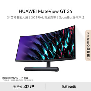 华为MateView GT 34英寸曲面显示器 WQHD 190Hz带鱼屏 快速液晶1ms Type-C SoundBar立体声场
