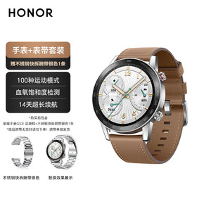荣耀手表GS 3i 亚麻棕+钢表带版本