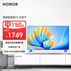 荣耀智慧屏Z3 55英寸 莱茵双重护眼 4K超清广色域 大内存 开关机无广告 金属全面屏 智能电视