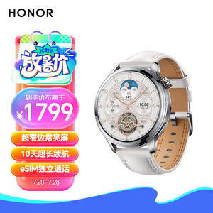 荣耀手表4 Pro 白色 超窄边常亮屏 10天eSIM超长续航 心率血氧监测 运动智能手表
